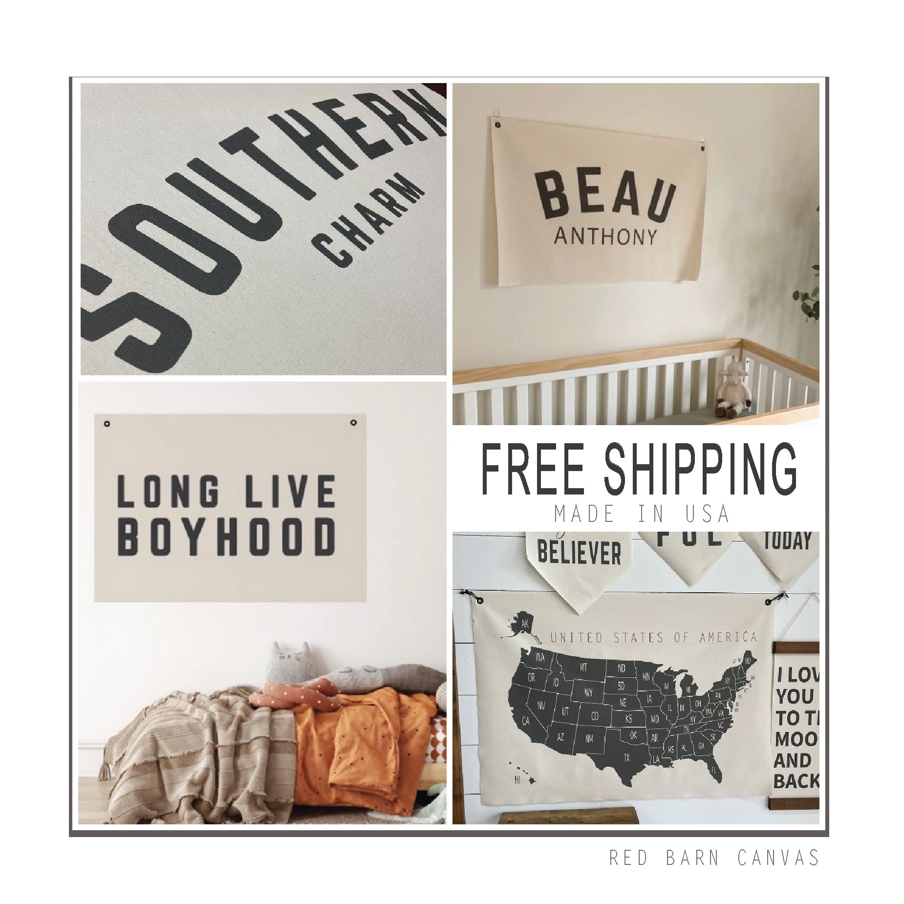 Our new natural canvas banner is modern and minimal but BIG on style. Fresh and trendy Christmas decor. This is professionally printed on our All Natural Unbleached Canvas. Best of all, simply roll it up and easily store each off season.