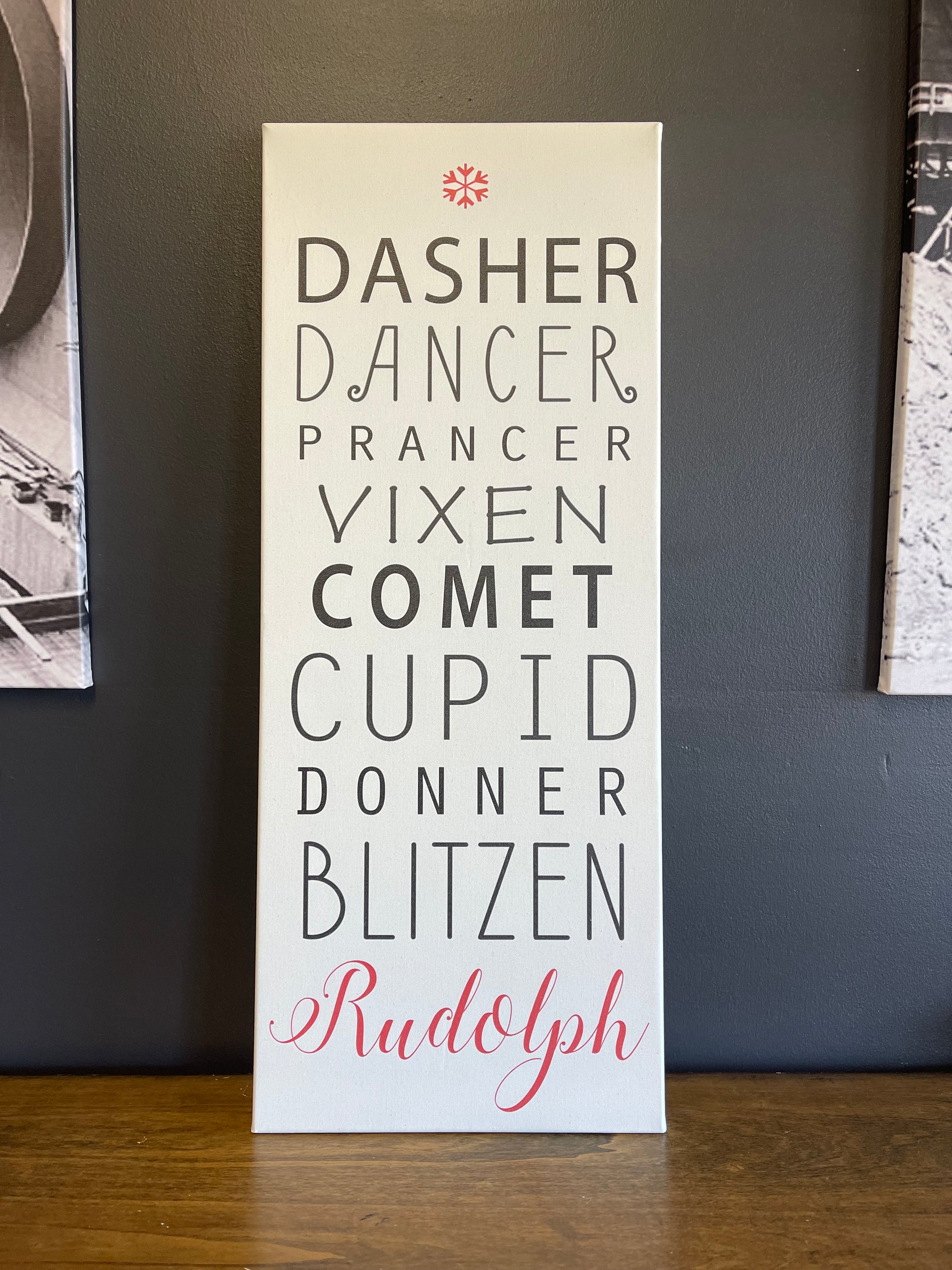 Bring nostalgic holiday cheer to your home with our Rudolph and Friends canvas! This festive wall art features a list of Santas best Reindeer friends β beautifully printed on premium artist-grade canvas.