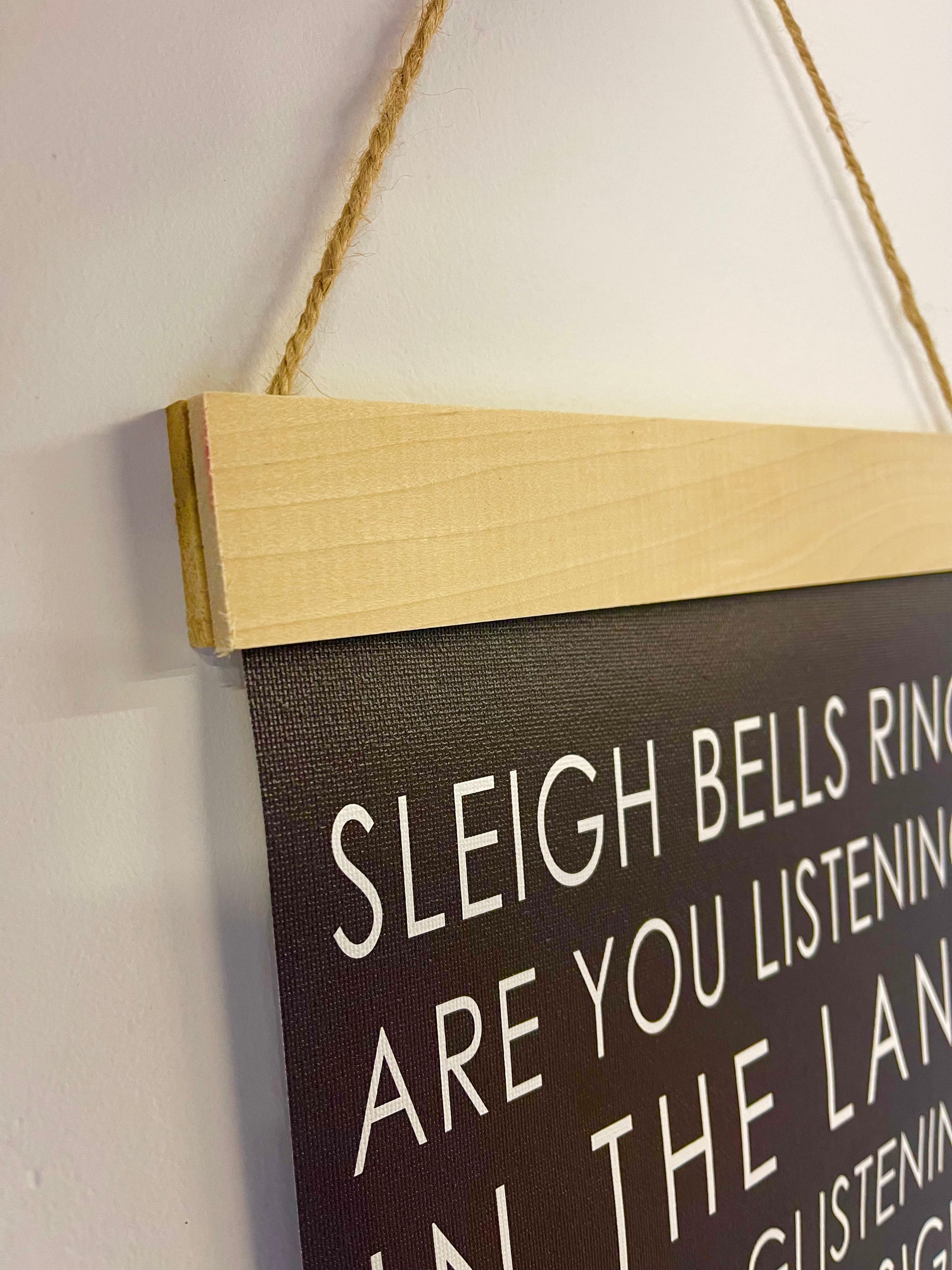 Winter Wonderland Canvas Hanging Banner – a modern and rustic twist on classic wall art. Professionally printed on premium canvas, then finished with smooth wooden planks at the top and bottom for structure and style. A simple hanging string or saw tooth hanger makes it easy to display in any space.